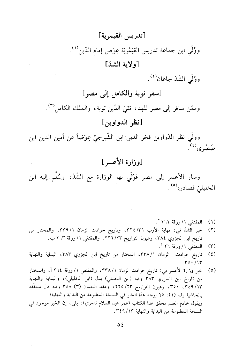 [4] تاريخ حوادث الزمان 1/ 338، المختار من تاريخ ابن الجزري 383، البداية والنهاية 13/ 350.