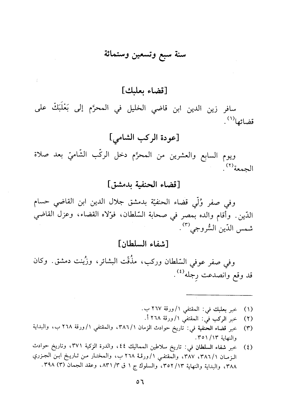 [3] خبر قضاء الحنفية في: تاريخ حوادث الزمان 1/ 386، والمقتفي 1/ ورقة 268 ب، والبداية والنهاية 13/ 351.