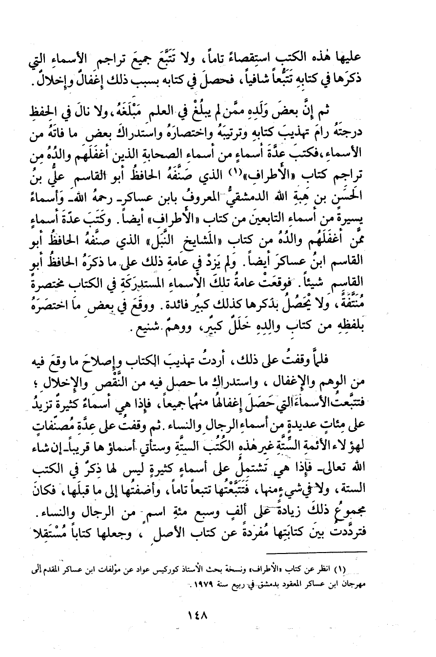 (1) انظر عن كتاب "الاطراف" ونسخة بحث الاستاذ كوركيس عواد من مؤلفات ابن عساكر المقدم إلى مهرجان ابن عساكر المعقود بدمشق في ربيع سنة 1979.