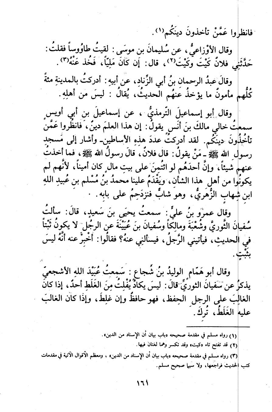 (3) رواه مسلم في مقدمة صحيحه"باب بيان أن الإسناد من الدين"، ومعظم الاقوال الآتية في مقدمات كتب الحديث فراجعها، ولا سيما صحيح مسلم.