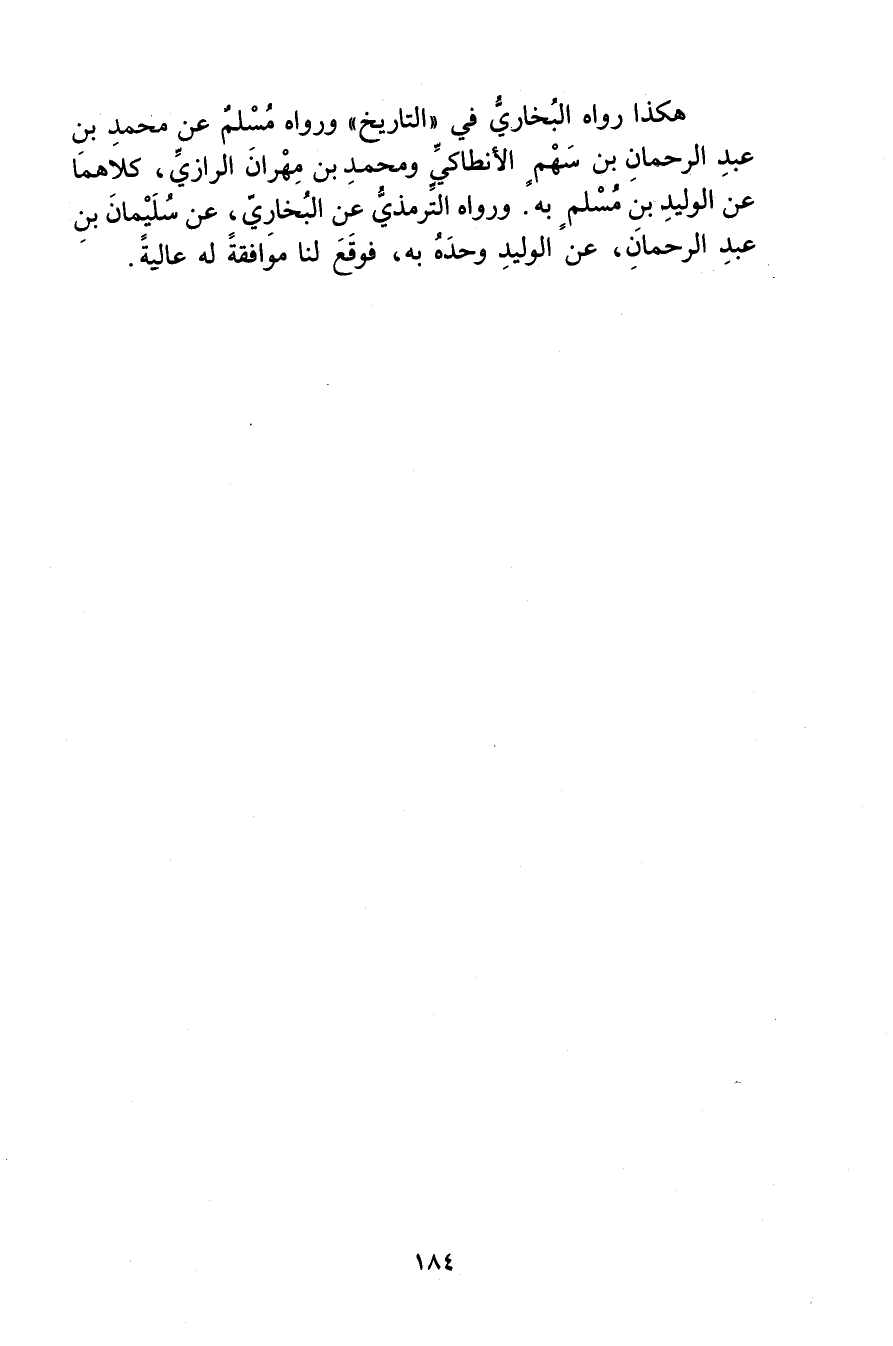 هكذا رواه البخاري في "التاريخ"ورَوَاهُ مُسْلِمٌ عَنْ مُحَمَّدِ بْنِ عَبْد الرحمن بْن سهم الأنطاكي ومحمد بن مهران الرازي، كلاهما عن الوليد بن مسلم به.