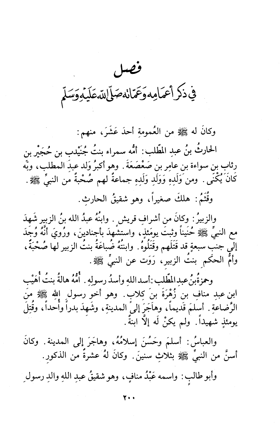 في ذكر أعمامه وعماته صَلَّى اللَّهُ عَلَيْهِ وسَلَّمَ
