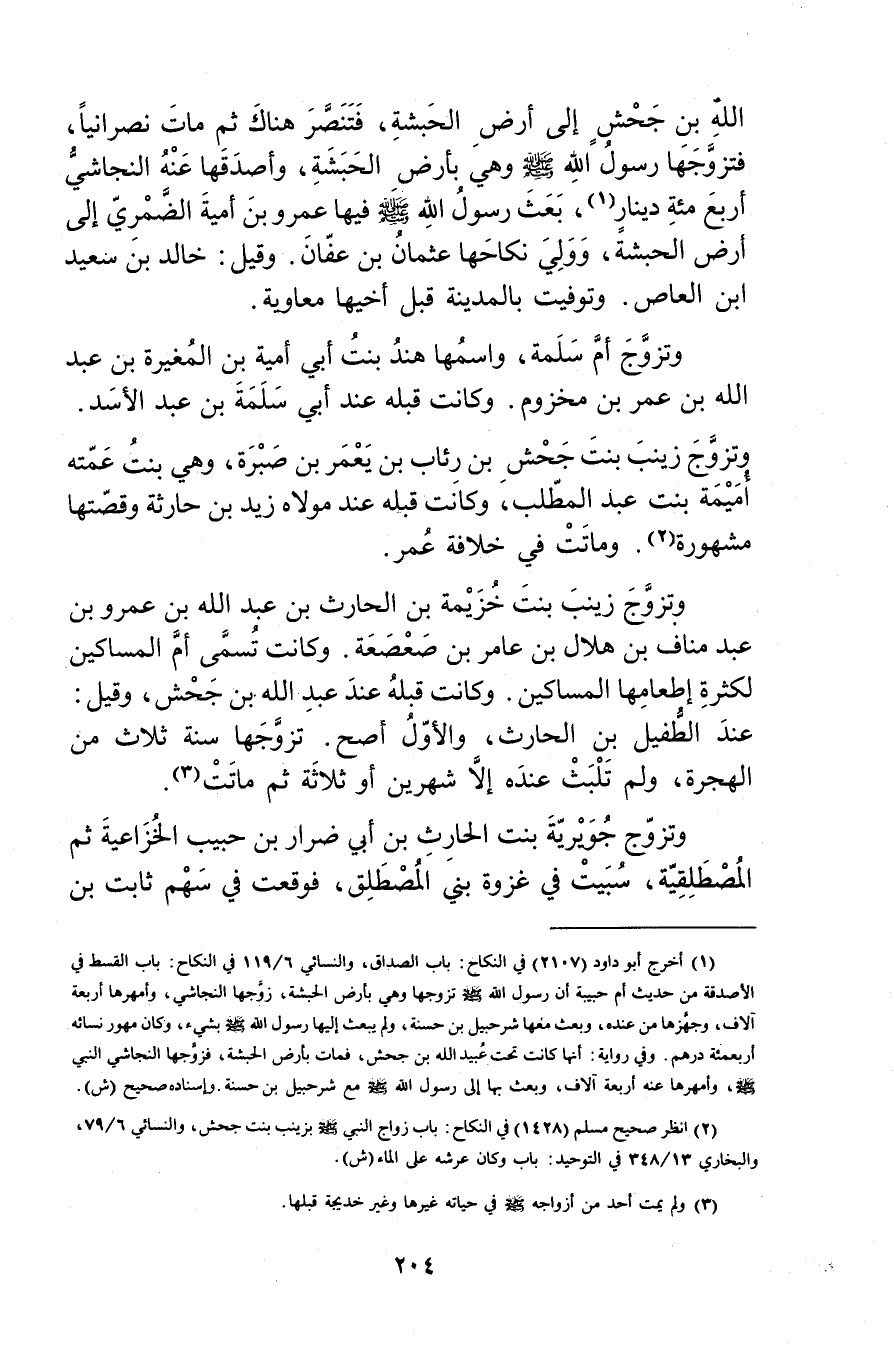 (1) أخرج أبو داود (2107) في النكاح: باب الصداق، والنَّسَائي 6 / 119 في النكاح: باب القسط في الاصدقة من حديث أُمِّ حَبِيبَةَ أَنَّ رَسُولَ اللَّهِ صلى الله عليه وسلم تزوجها وهي بأرض الحبشة، زوجها النجاشي، وأمهرها أربعة آلاف، وجهزها من عنده، وبعث معها شرحبيل بن حسنة، ولم يبعث إِلَيْهَا رَسُولُ اللَّهِ صَلَّى اللَّهُ عليه وسلم بشيءٍ، وكان مهور نسائه أربعمئة درهم. وفي رواية: أنها كانت تحت عُبَيد الله بن جحش، فمات بأرض الحبشة، فزوجها النجاشي النَّبِيُّ صلى الله عليه وسلم، وأمهرها عنه أربعة آلاف، وبعث بِهَا إِلَى رَسُول اللَّهِ صلى الله عليه وسلم مع شرحبيل بن حسنة. وإسناده صحيح ((ش) .