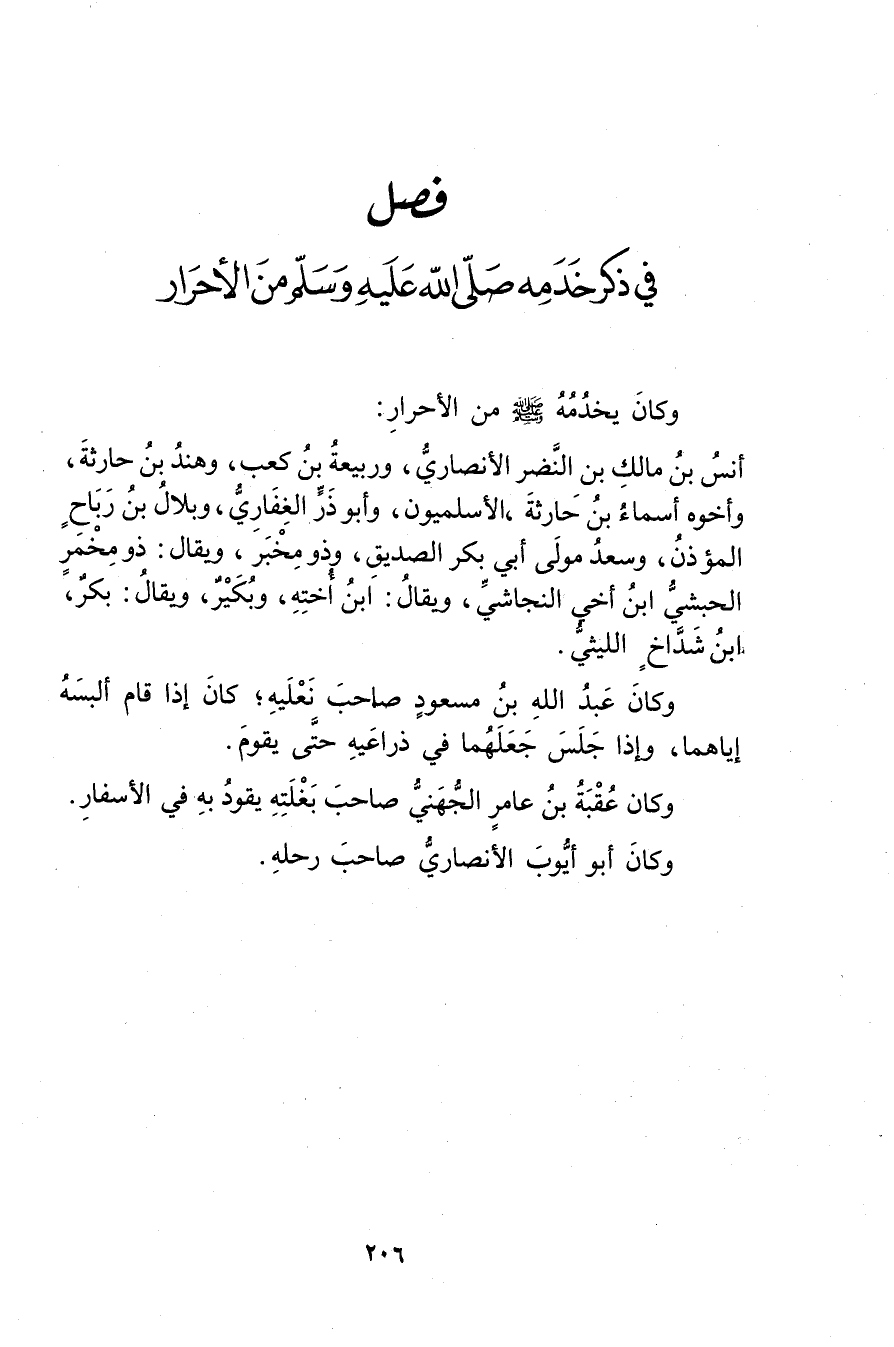 في ذكر خدمه صلى الله عليه وسلم من الاحرار