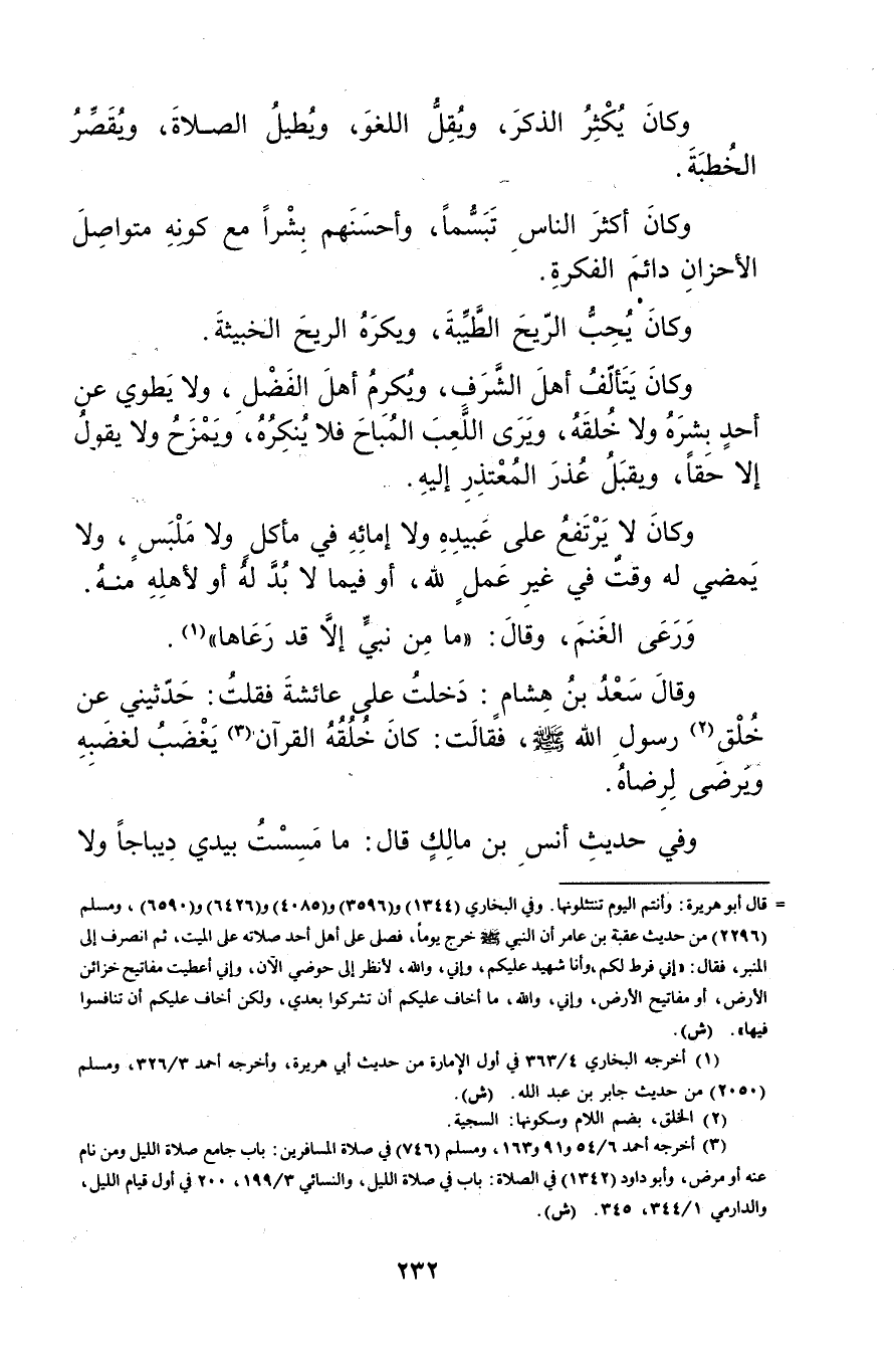 وكان أكثر الناس تبسما، وأحسنهم بشرا مع كونه متواصل الاحزان دائم الفكرة.