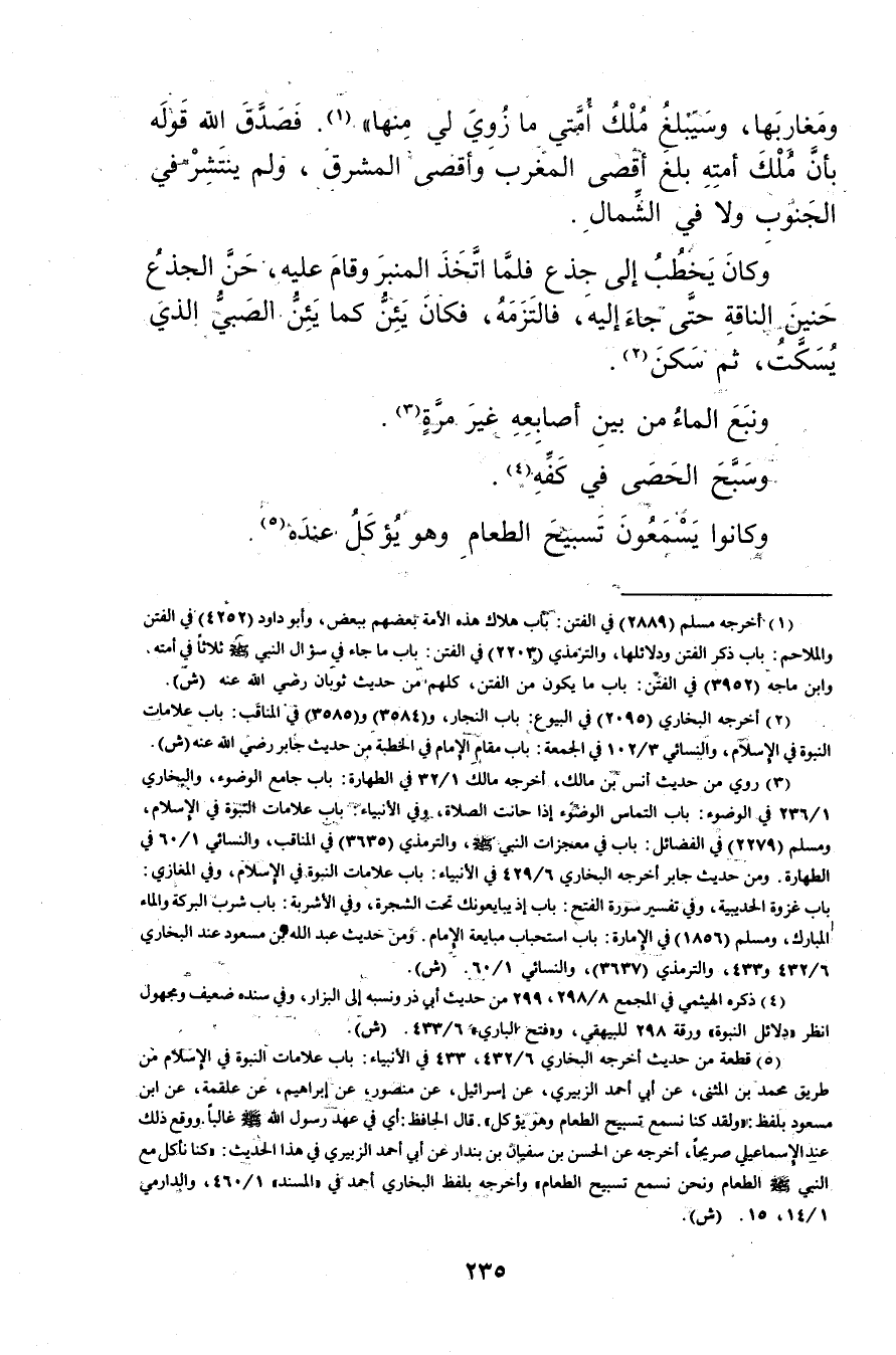 (5) قطعة من حديث أخرجه البخاري 6 / 432 و433 في الانبياء: باب علامات النبوة في الاسلام من طريق محمد بن المثنى، عَن أبي احمد الزبيري، عن إسرائيل، عن منصور، عن إبراهيم، عن علقمة، عن ابن