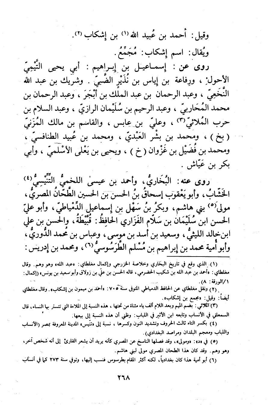 (2) ونقل مغلطاي عن الحافظ الدمياطي المتوفى سنة 705: أحمد بن ميمون بن إشكاب". وَقَال مغلطاي أيضا: وقيل: مجمع بن إشكاب.