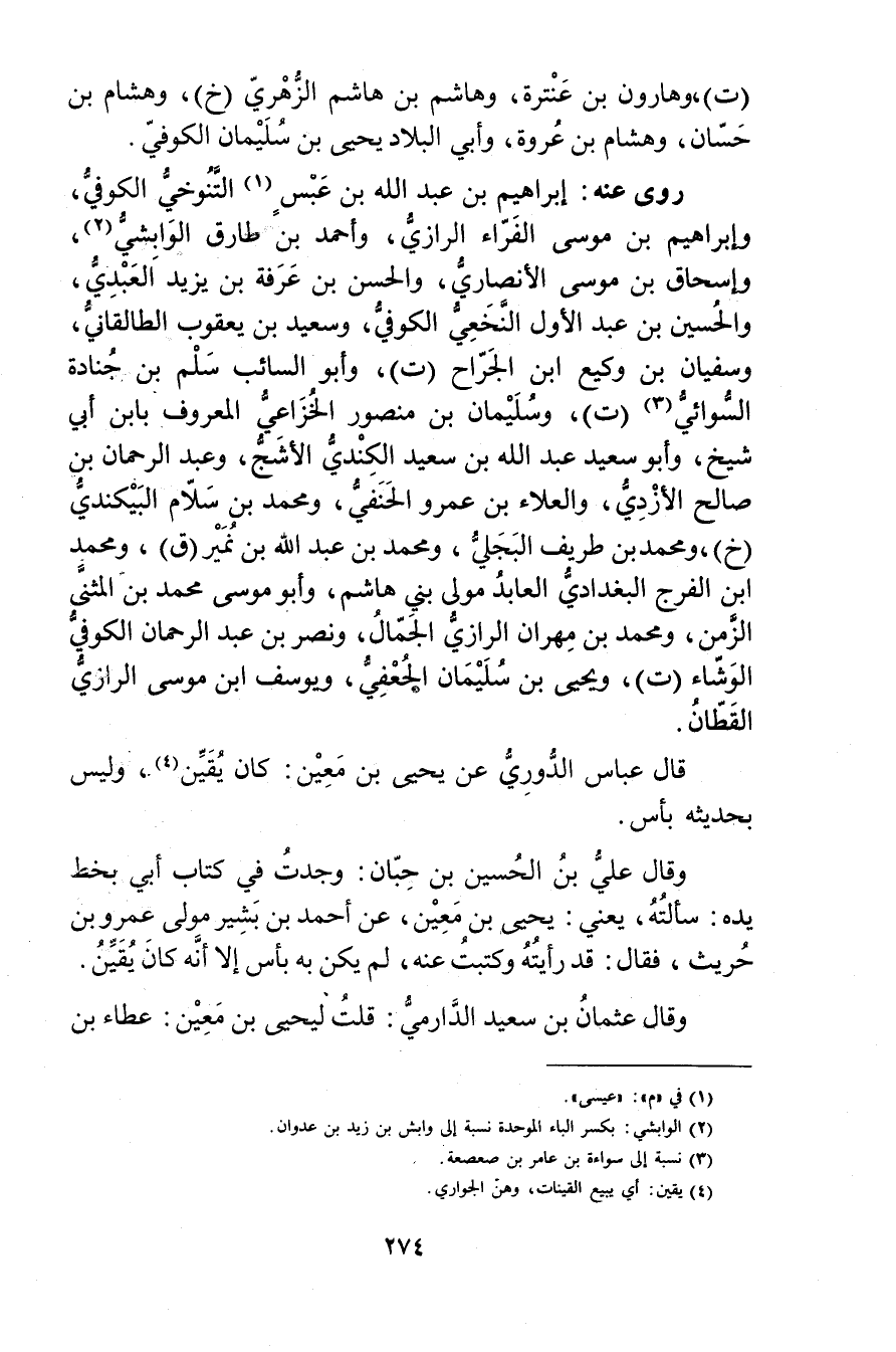 قال عَبَّاس الدُّورِيُّ عَنْ يحيى بْن مَعِين: كَانَ يقين (4) ، وليس بحديثه بأس.