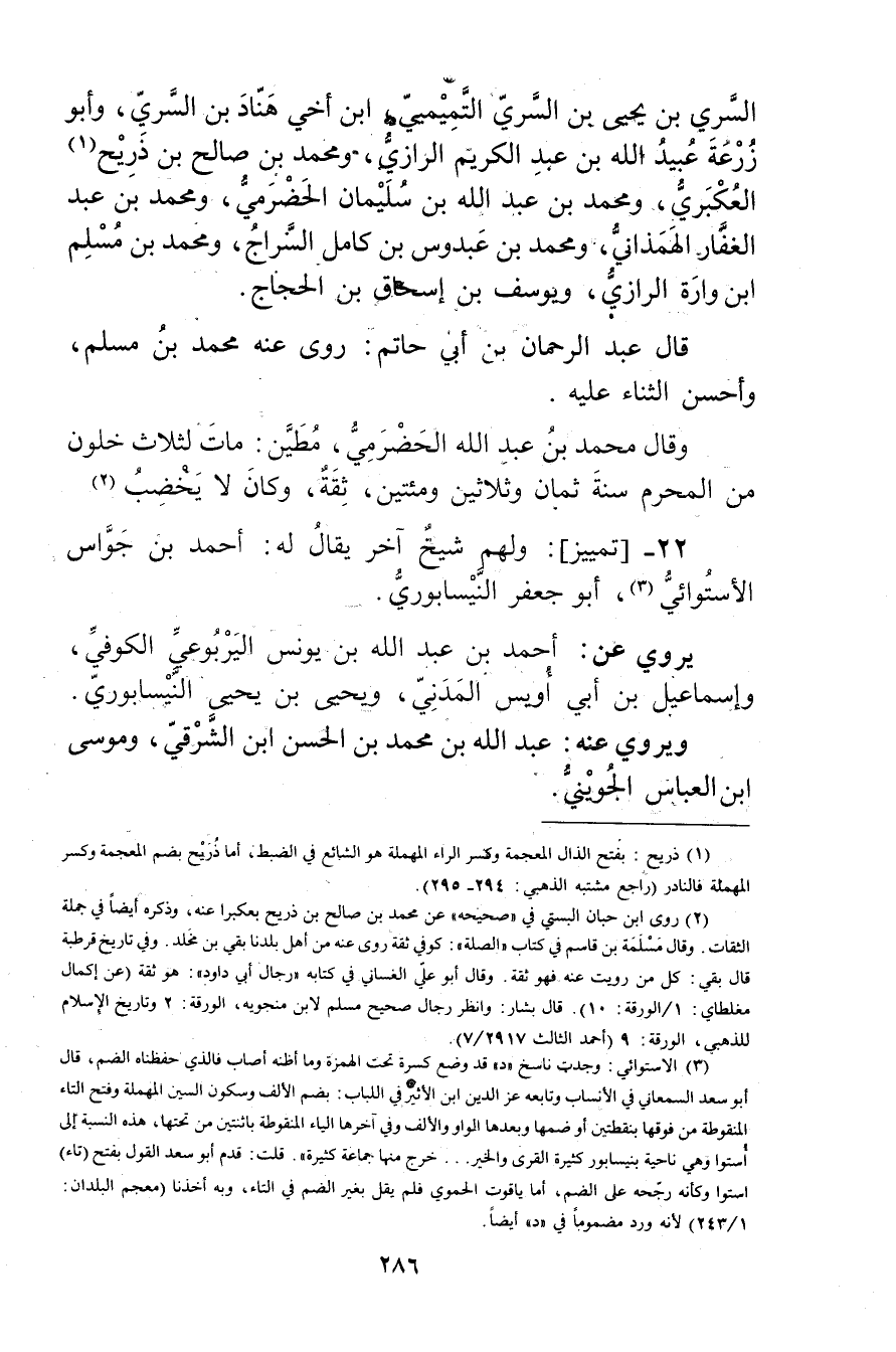 (1) ذريح: بفتح الذال المعجمة وكسر الراء المهملة هو الشائع في الضبط، أما ذريح بضم المعجمة وكسر المهملة فالنادر (راجع مشتبه الذهبي: 295 294) .