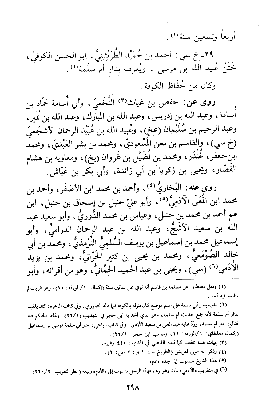 29- خ سي: أَحْمَد بن حميد الطريثيثي، أَبُو الْحَسَن الكوفي، ختن عُبَيد اللَّهِ بْن مُوسَى، ويعرف بدار أم سَلَمَة (2) .