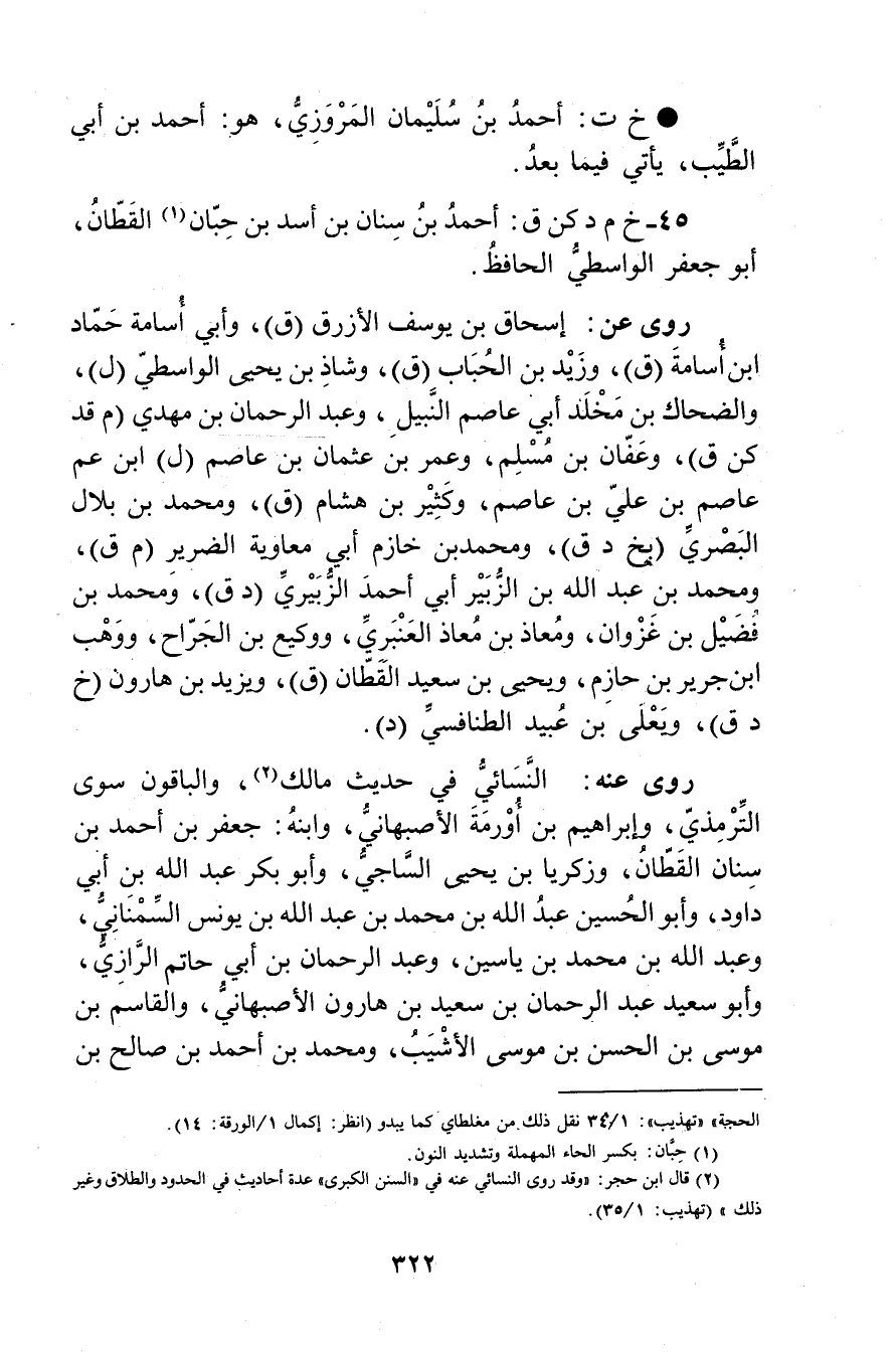 45- خ م كن ق: أَحْمَد بن سنان بن أسد بن حبان (1) القطان، أَبُو جَعْفَر الواسطي الْحَافِظ.