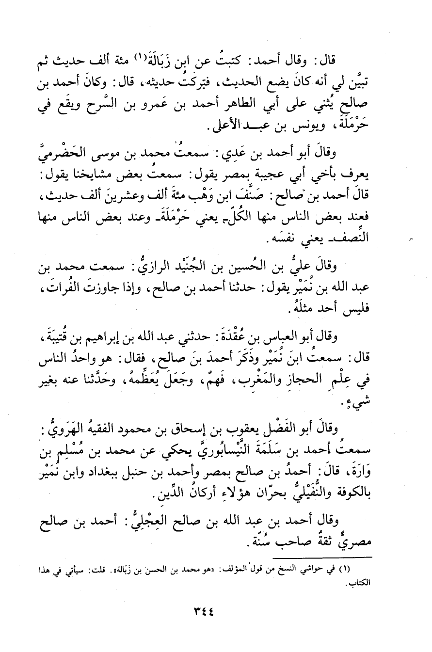 وَقَال أَحْمَد بْن عَبد اللَّهِ بْن صَالِح العجلي: أَحْمَد بْن صَالِح مصري ثقة صاحب سنة.