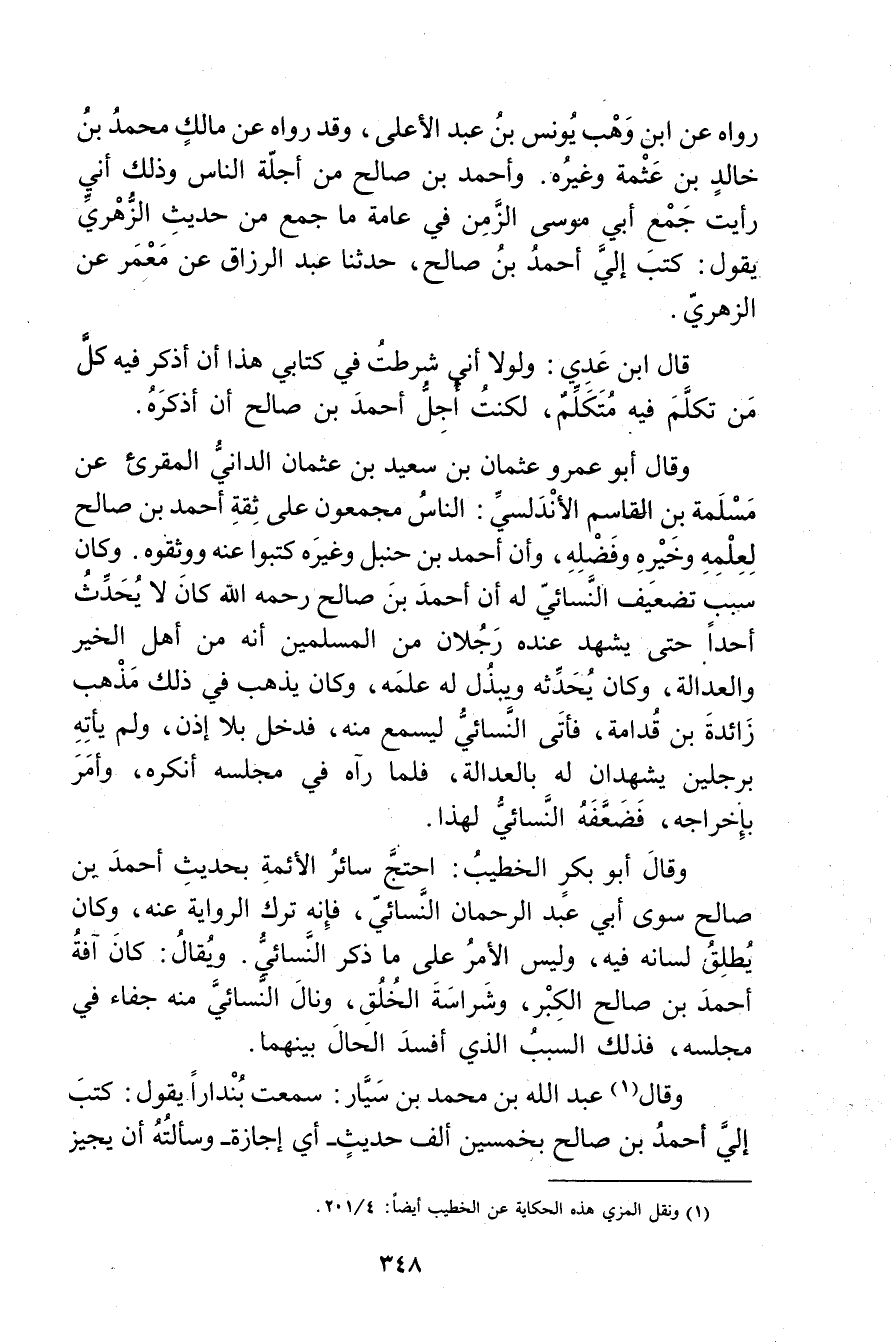 (1) ونقل المزي هذه الحكاية عن الخطيب أيضا: 4 / 201.
