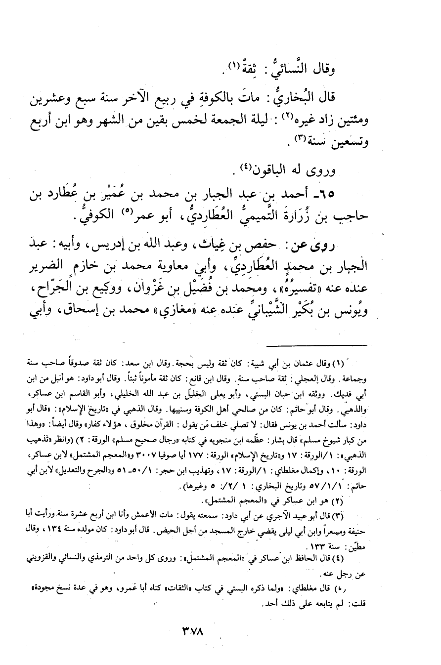 (5) قال مغلطاي: ولما ذكره البستي في كتاب "الثقات" كناه أبا عَمْرو، وهو في عدة نسخ مجودة"قلت: لم يتابعه على ذلك أحد.