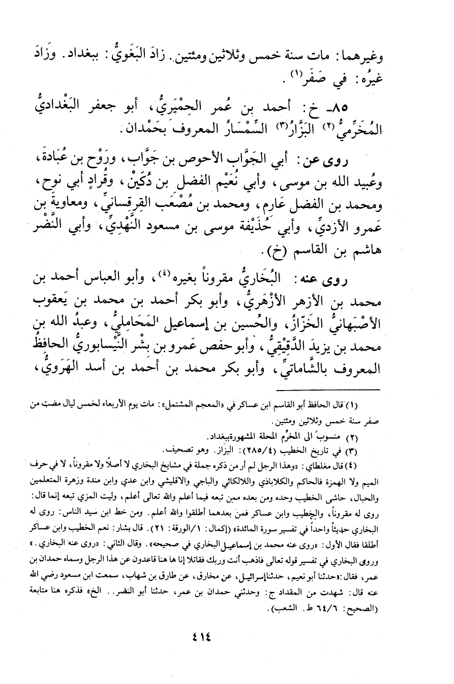 85- خ: أَحْمَد بن عُمَر الحميري، أَبُو جَعْفَر الْبَغْدَادِيّ المخرمي (2) البزار (3) السمسار المعروف بحمدان.