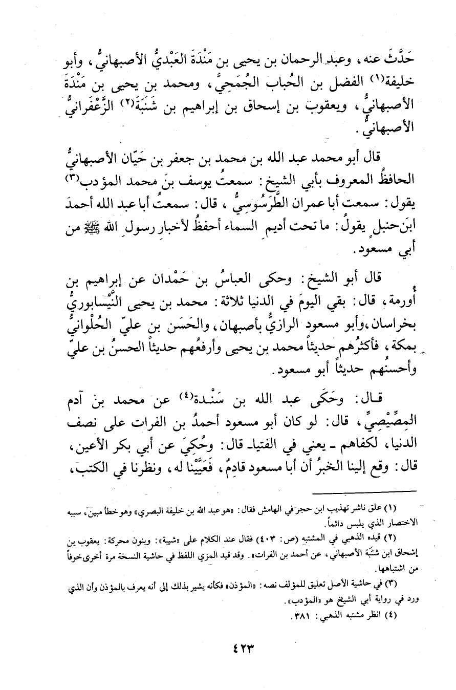 (3) في حاشية الاصل تعليق للمؤلف نصه: المؤذن"فكأنه يشير بذلك إلى أنه يعرف بالمؤذن وأن الذي ورد في رواية أبي الشيخ هو"المؤدب.