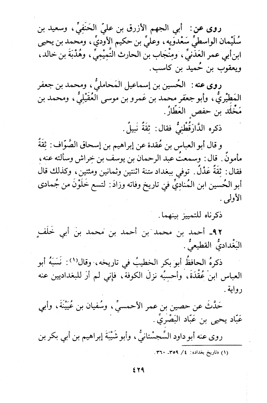 (1) "تاريخ بغداد": 4 / 360 359.