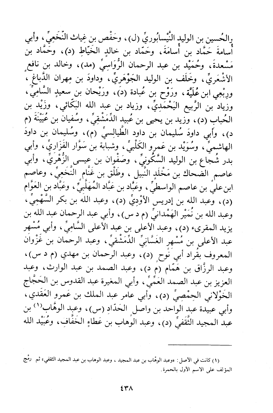 (1) كانت في الاصل: وعبد الوهاب بْن عَبد المجيد، وعبد الوهاب بن عبد الجميد الثقفي"ثم رمج المؤلف على الاسم الاول بالحمرة.
