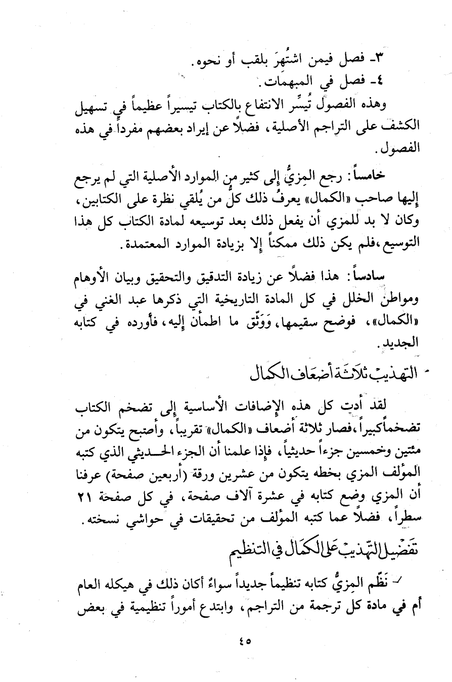 تفضيل التهذيب على الكمال في التنظيم