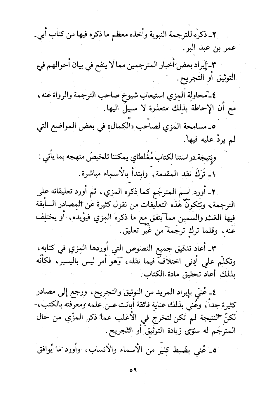 4- عني بإيراد المزيد من التوثيق والتجريح، ورجع إلى مصادر كثيرة جدا، وعني بذلك عناية فائقة أبانت عن علمه ومعرفته بالكتب، لكن النتيجة لم تكن لتخرج في الاغلب عما ذكر المزي من حال المترجم له سوى زيادة التوثيق أو التجريح.