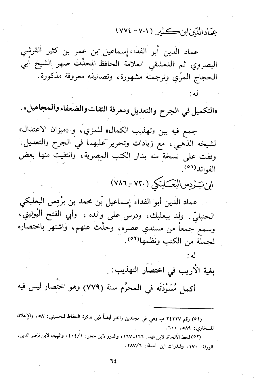 (1) رقم 24227 ب وهي في مجلدين وانظر أيضا ذيل تذكرة الحفاظ للحسيني: 58، والاعلان للسخاوي: 589، 600.