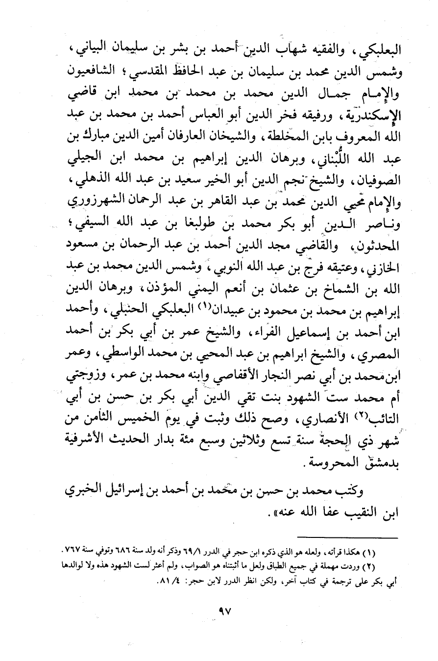 (1) هكذا قرأته، ولعله هو الذي ذكره ابن حجر في الدرر 1 / 96 وذكر أنه ولد سنة 686 وتوفي سنة 767.