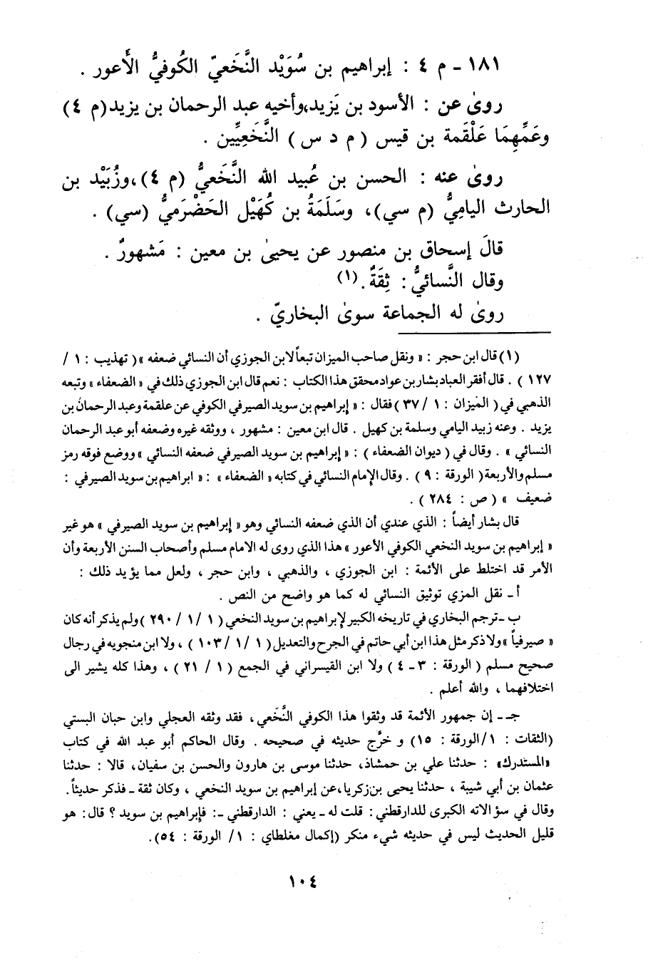 181- م 4: إبراهيم بن سويد النخعي الكوفي الأَعور.