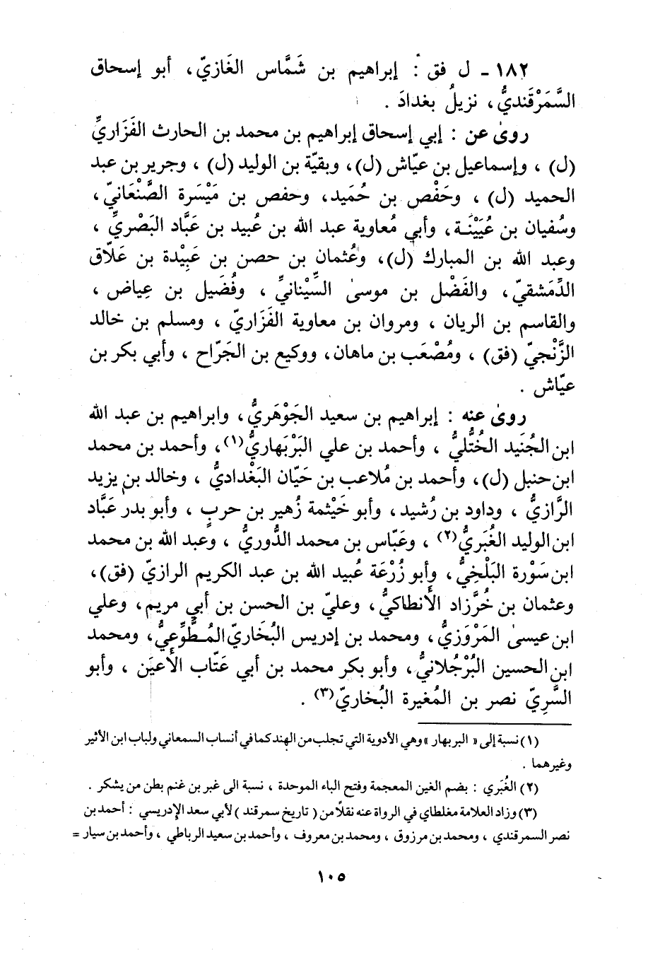 182- ل فق: إِبْرَاهِيم بن شماس الغازي، أبو إسحاق السمرقندي، نزيل بغداد.