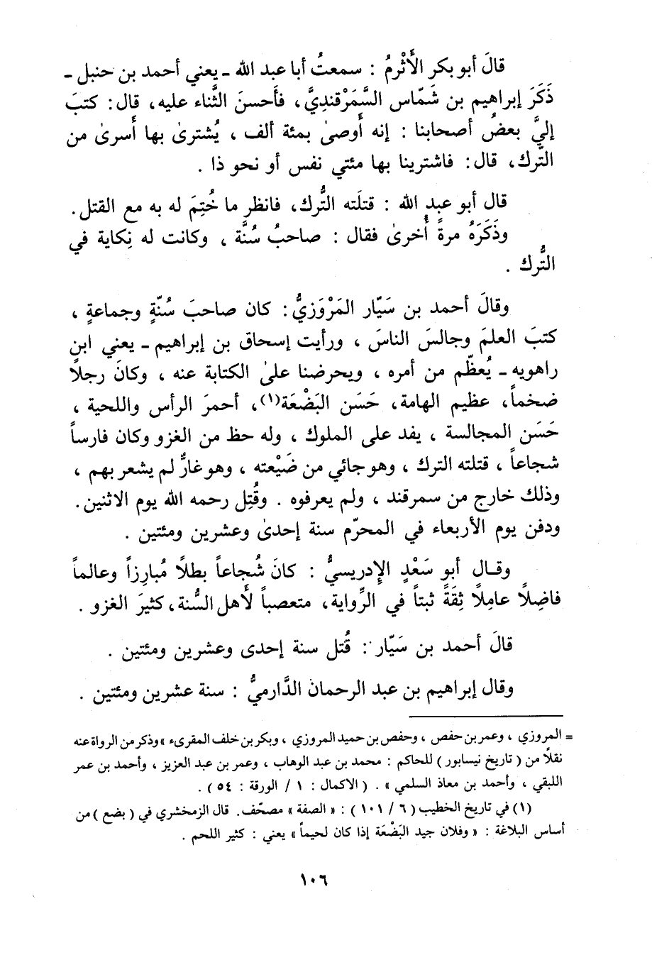 وذكره مرة أخرى فَقَالَ: صاحب سنة، وكانت له نكاية في الترك.