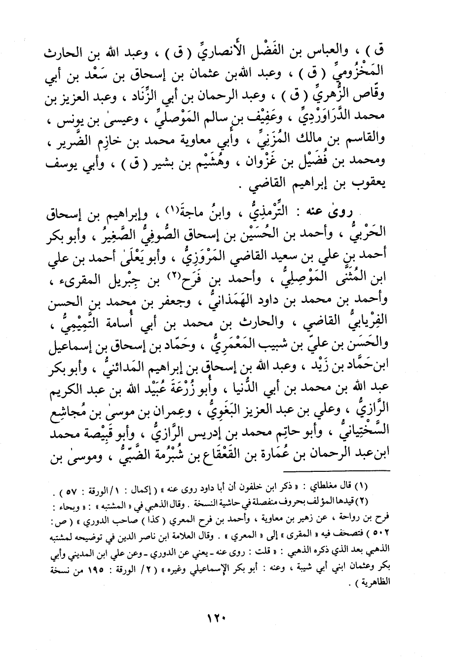(2) قيدها المؤلف بحروف منفصلة في حاشية النسخة. وَقَال الذهبي في "المشتبه": وبحاء: فرح بن رواحة، عن زهير بن معاوية، وأحمد بن فرح المعري (كذا) صاحب الدوري" (ص: 502) فتصحف فيه"المقرى"إلى"المعري". وَقَال العلامة ابن ناصر الدين في توضيحه لمشتبه الذهبي بعد الذي ذكره الذهبي: قلت: روى عنه، يعني عن الدوري - وعن علي ابن المديني وأبي بَكْرٍ وعُثْمَانَ ابْنَيِ أَبِي شَيْبَة، وعَنه: أبو بكر الإِسماعيلي وغيره" (2 / الورقة: 195 من نسخة الظاهرية) .