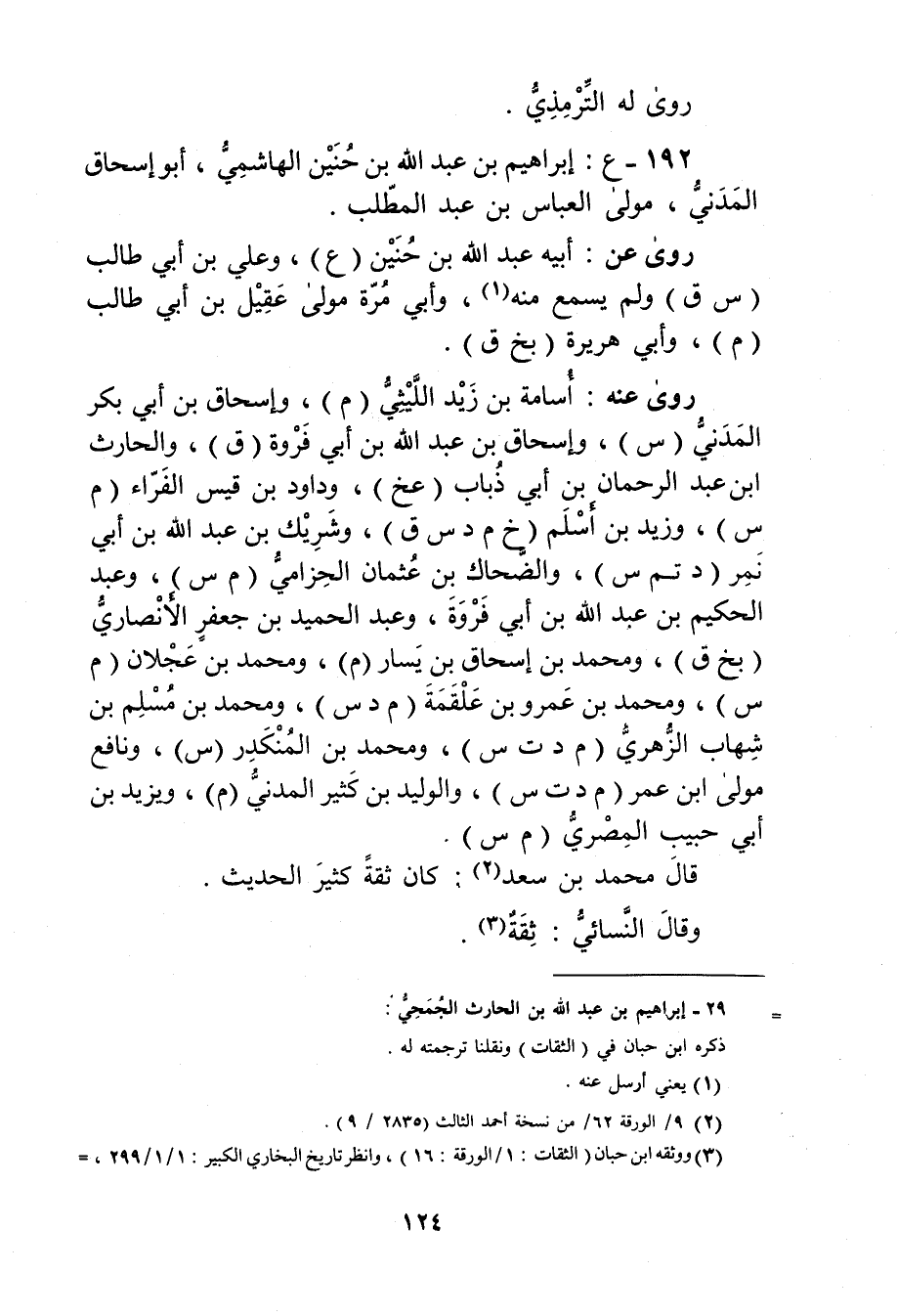 192- ع: إِبْرَاهِيم بْن عَبد الله بْن حنين الهاشمي، أبو إسحاق المدني، مولى العباس بن عبد المطلب.