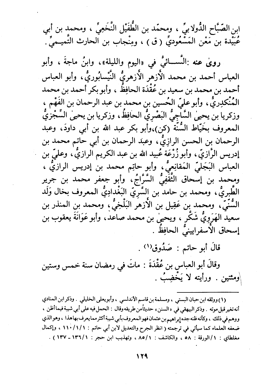ابن الصباح الدولابي، محمد بْن الطفيل النخعي، ومحمد بْن أَبي عُبَيدة بْن معَنِ المسعودي (ق) ، ومنجاب بْن الحارث التميمي.