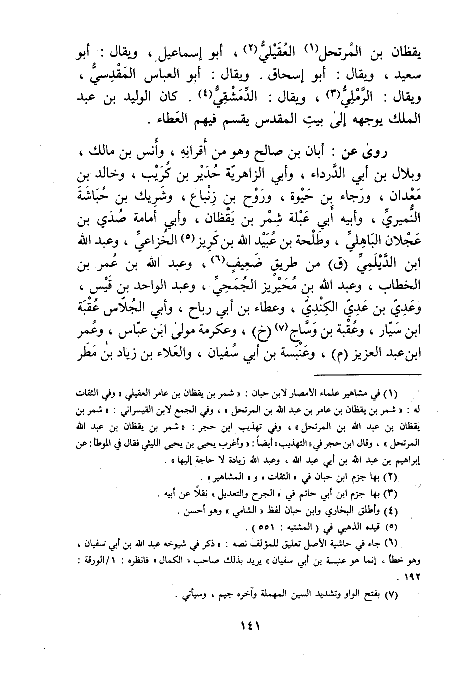 (1) في مشاهير علماء الامصار لابن حبان: شمر بن يقظان بن عامر العقيلي"وفي الثقات له: شمر بن يقظان بْن عامر بْن عَبد اللَّهِ بن المرتحل"، وفي الجمع لابن القيسراني: شمر بن يقظان بن عَبد الله بن المرتحل"، وفي تهذيب ابن حجر: شمر بن يقظان بن عَبد الله المرتحل"، وَقَال ابن حچر في "التهذيب"أيضا: وأغرب يحيى بن يحيى الليثي فقال في الموطأ: عَن إِبْرَاهِيم بْن عَبد الله بن أَبي عَبد الله، وعبد الله زيادة لا حاجة إليها.