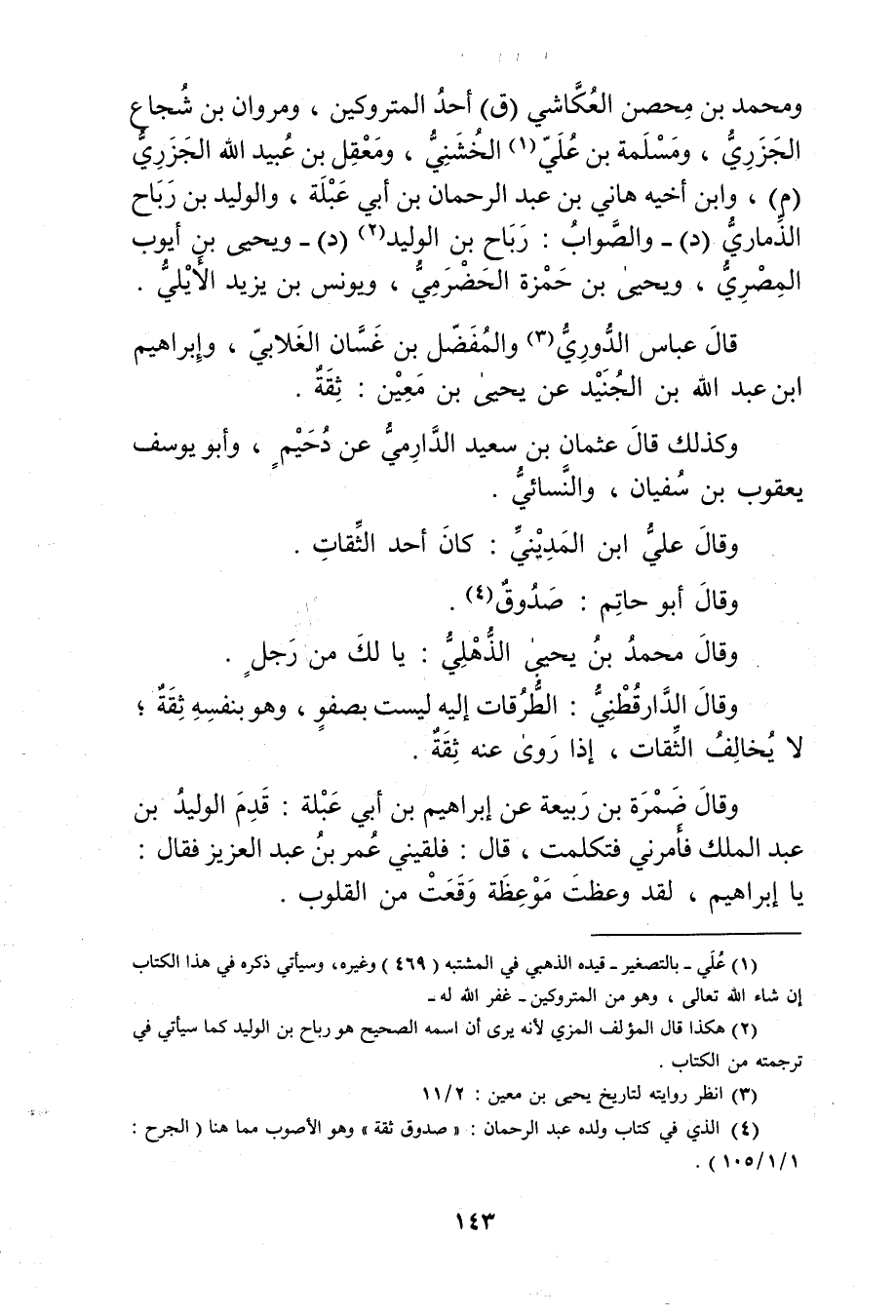 (4) الذي في كتاب ولده عبد الرحمن: صدوق ثقة"وهو الاصوب مما هنا (الجرح: 1 / 1 / 105) .