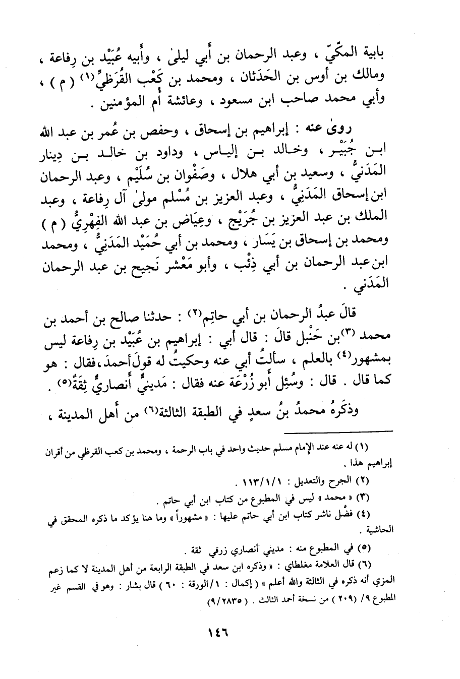 (6) قال العلامة مغلطاي: وذكره ابن سعد فِي الطبقة الرابعة من أهل المدينة لا كما زعم المزي أنه ذكره في الثالثة والله أعلم" (إكمال: 1 / الورقة: 60) قال بشار: وهو في القسم غير المطبوع 9 / (209) من نسخة أحمد الثالث. (2835 / 9) .