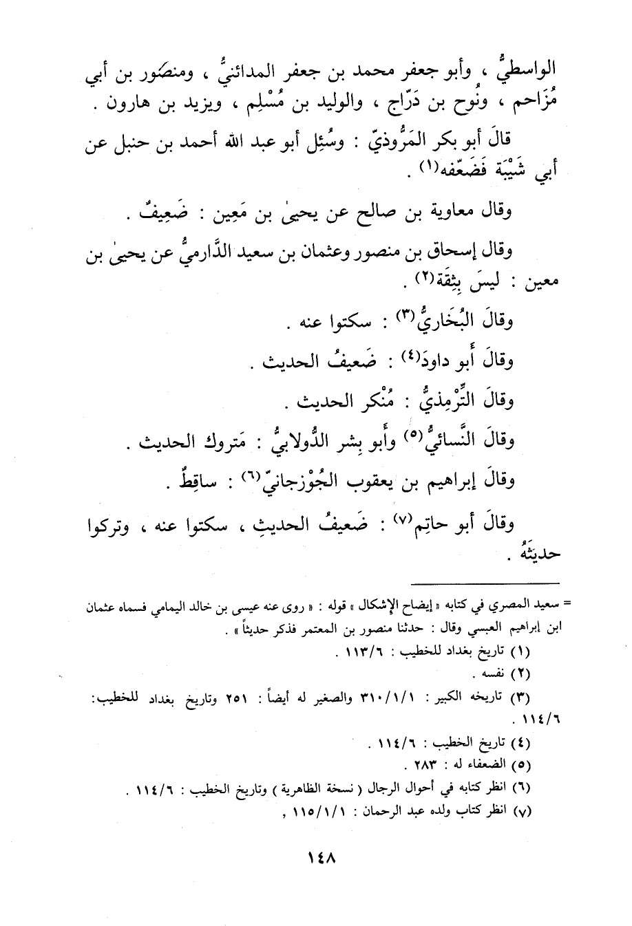 (6) انظر كتابه في أحوال الرجال (نسخة الظاهرية) وتاريخ الخطيب: 6 / 114.