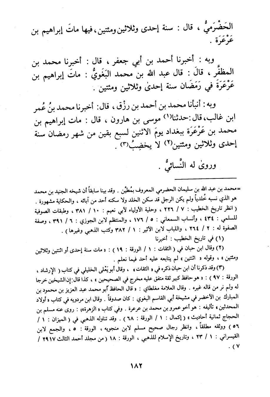 (2) وَقَال ابن حبان في (الثقات: 1 / الورقة: 19) : مات سنة إحدى أو اثنتين وثلاثين ومئتين"، وقوله"اثنتين"لم يتابعه عليه أحد فيما نعلم.