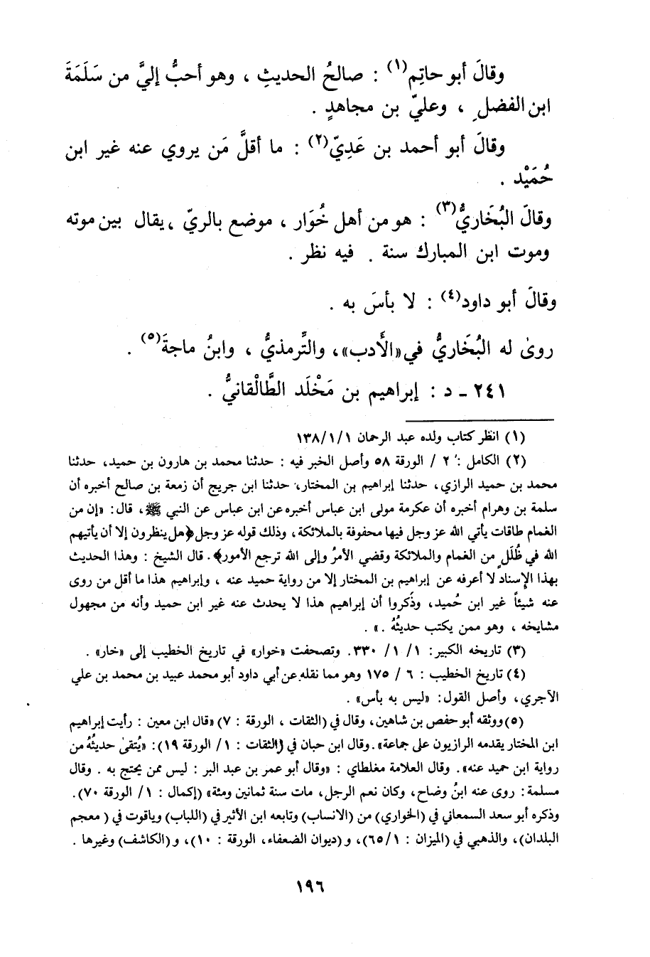 (5) ووثقه أبو حفص بن شاهين، وَقَال في (الثقات، الورقة: 7) "قال ابن مَعِين: رأيت إبراهيم ابن المختار يقدمه الرازيون على جماعة". وَقَال ابن حبان في (الثقات: 1 / الورقة 19) : يتقى حديثه من رواية ابن حميد عنه". وَقَال العلامة مغلطاي: وَقَال أبو عُمَر بن عَبد الْبَرِّ: ليس ممن يحتج به. وَقَال مسلمة: روى عنه ابن وضاح، وكان نعم الرجل، مات سنة ثمانين ومئة" (إكمال: 1 / الورقة 70) ، وذَكَره أبو سعد السمعاني في (الخواري) من (الانساب) وتابعه ابن الاثير في (اللباب) وياقوت في (معجم البلدان) ، والذهبي في (الميزان: 1 / 65) ، و (ديوان الضعفاء، الورقة: 10) ، و (الكاشف) وغيرها.