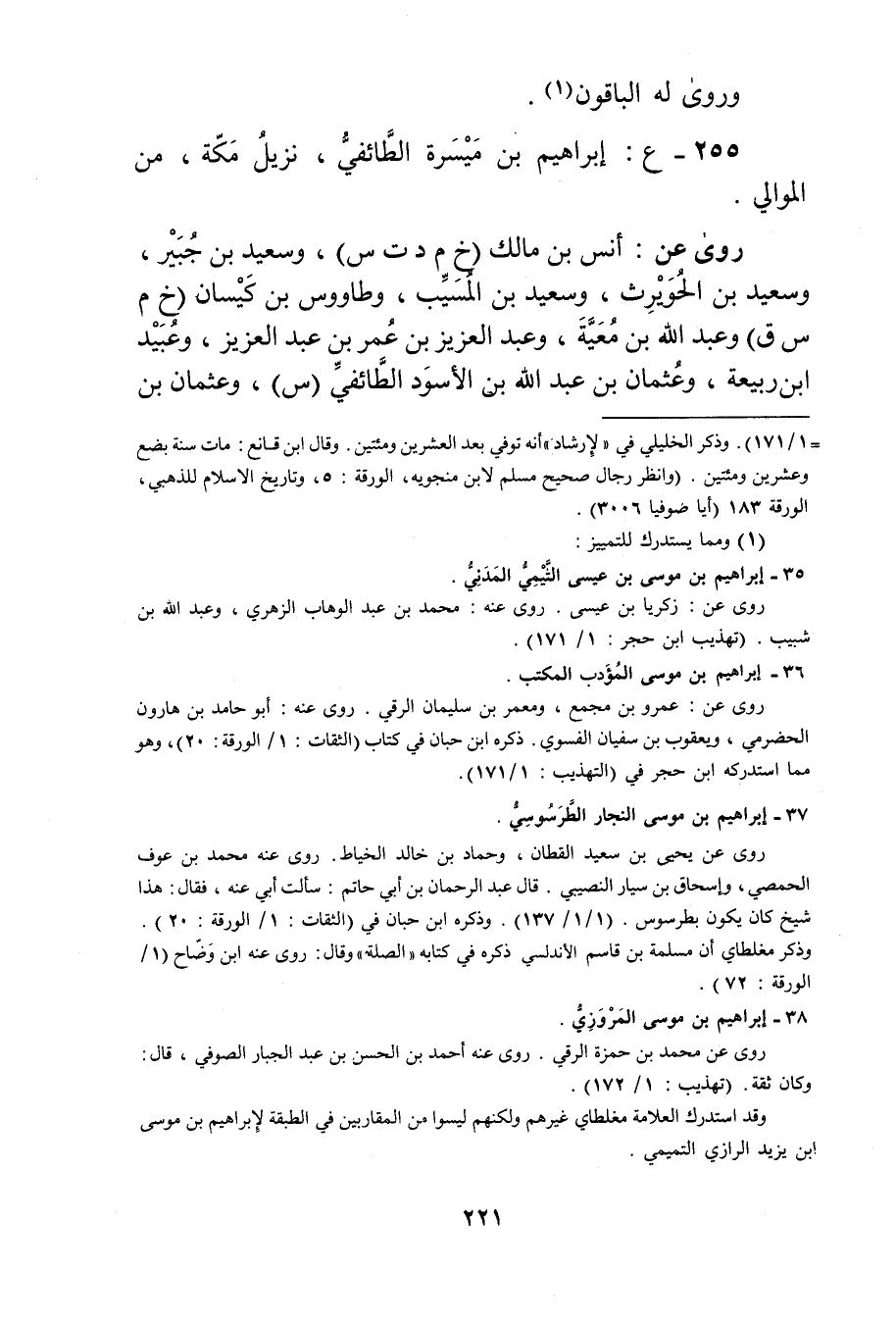 وقد استدرك العلامة مغلطاي غيرهم ولكنهم ليسوا من المقاربين في الطبقة لابراهيم بن موسى ابن يزيد الرازي التميمي.