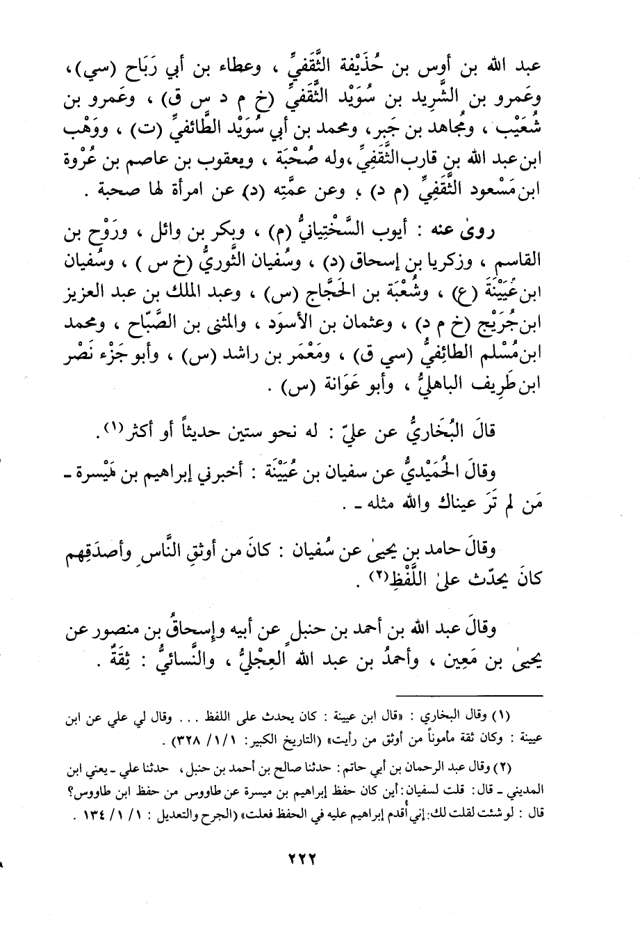 (2) وَقَال عَبْد الرَّحْمَنِ بْن أَبي حاتم: حَدَّثَنَا صالح بْن أحمد بن حنبل، حَدَّثَنَا علي، يعني ابْن المديني، قال: قلت لسفيان: أين كان حفظ إبراهيم بن ميسرة عن طاووس من حفظ ابن طاووس؟ قال: لو شئت لقلت لك: إني أقدم إبراهيم عليه في الحفظ فعلت" (الجرح والتعديل: 1 / 1 / 134.