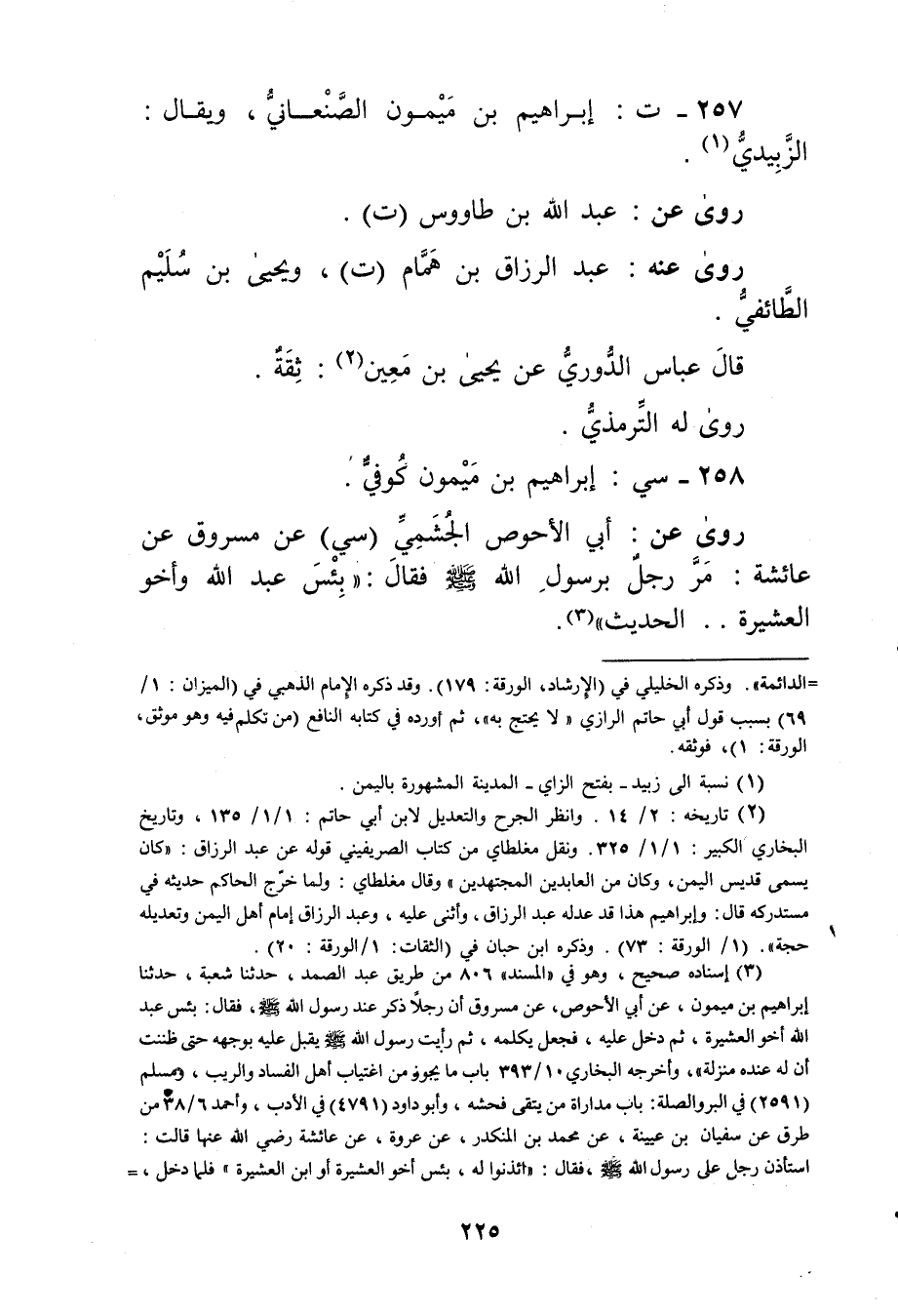 257- ت: إِبْرَاهِيم بن ميمون الصنعاني، ويُقال: الزبيدي (1) .