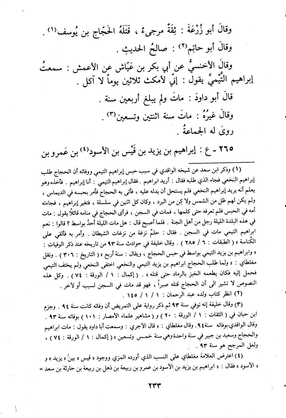 (4) اعترض العلامة مغلطاي على النسب الذي أورده المزي ووجود"قيس"بين"يزيد"و"الأسود"فقال: ابراهيم بن يزيد بن الأسود بن عَمْرو بن ربيعة بن ذهل بن ربيعة بن حارثة بن سعد =