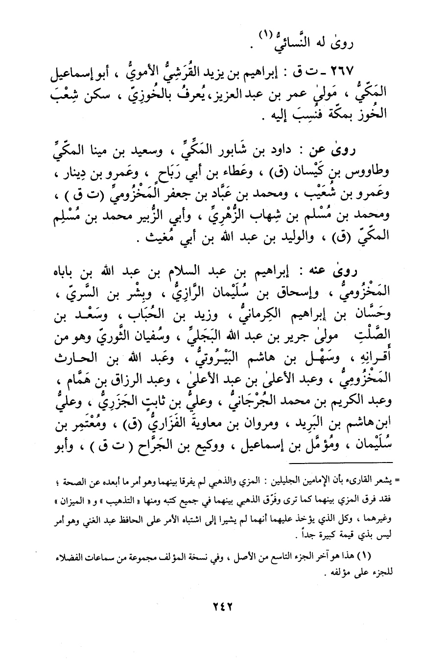 267 - ت ق: إِبْرَاهِيم بن يزيد القرشي الأُمَوِي، أبو إِسْمَاعِيل المكي، مولى عُمَر بْن عَبْد العزيز، يعرف بالخوزي، سكن شعب الخوز بمكة فنسب إليه.