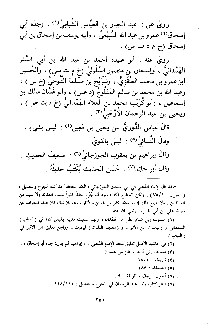 = وقد قال الإمام الذهبي في أبي إسحاق الجوزجاني"الثقة الحافظ أحد أئمة الجرح والتعديل" (الميزان: 1 / 75) ، ولكن المطالع لكتابه يجد أنه جرح خلقا كثيرا بسبب العقائد ولا سيما من العراقيين، ولا يصح ذلك إذ به تسقط كثير من السنن والآثار، وهو بلا شك كان عنده انحراف عن سيدنا عَلِيّ بْن أَبي طالب - رضي الله عنه -