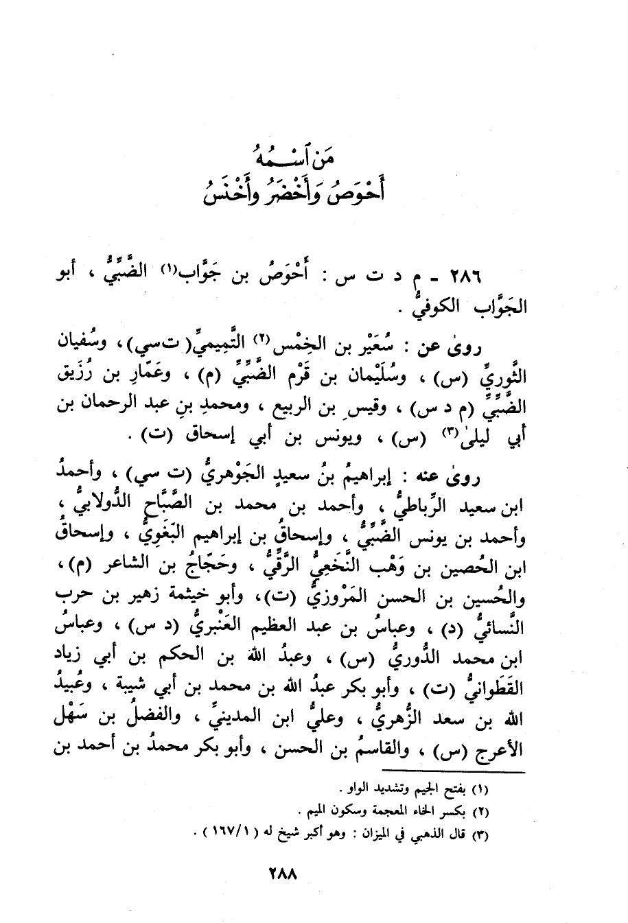 286- م د ت س: أحوص بن جواب (1) الضبي، أبو الجواب الكوفي.