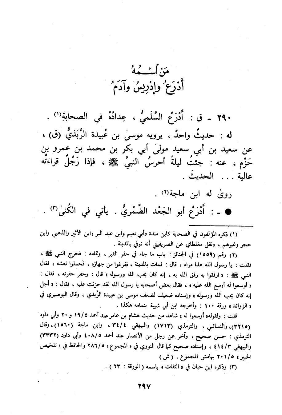 290- ق: أدرع السلمي، عداده في الصحابة (1) .
