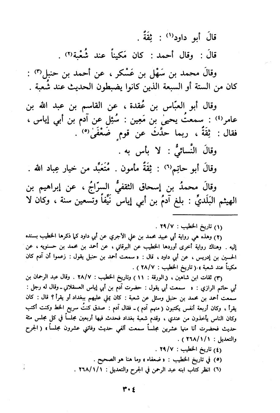 (6) انظر كتاب ابنه عَبد الرحمن في الجرح والتعديل: 1 / 1 / 268.