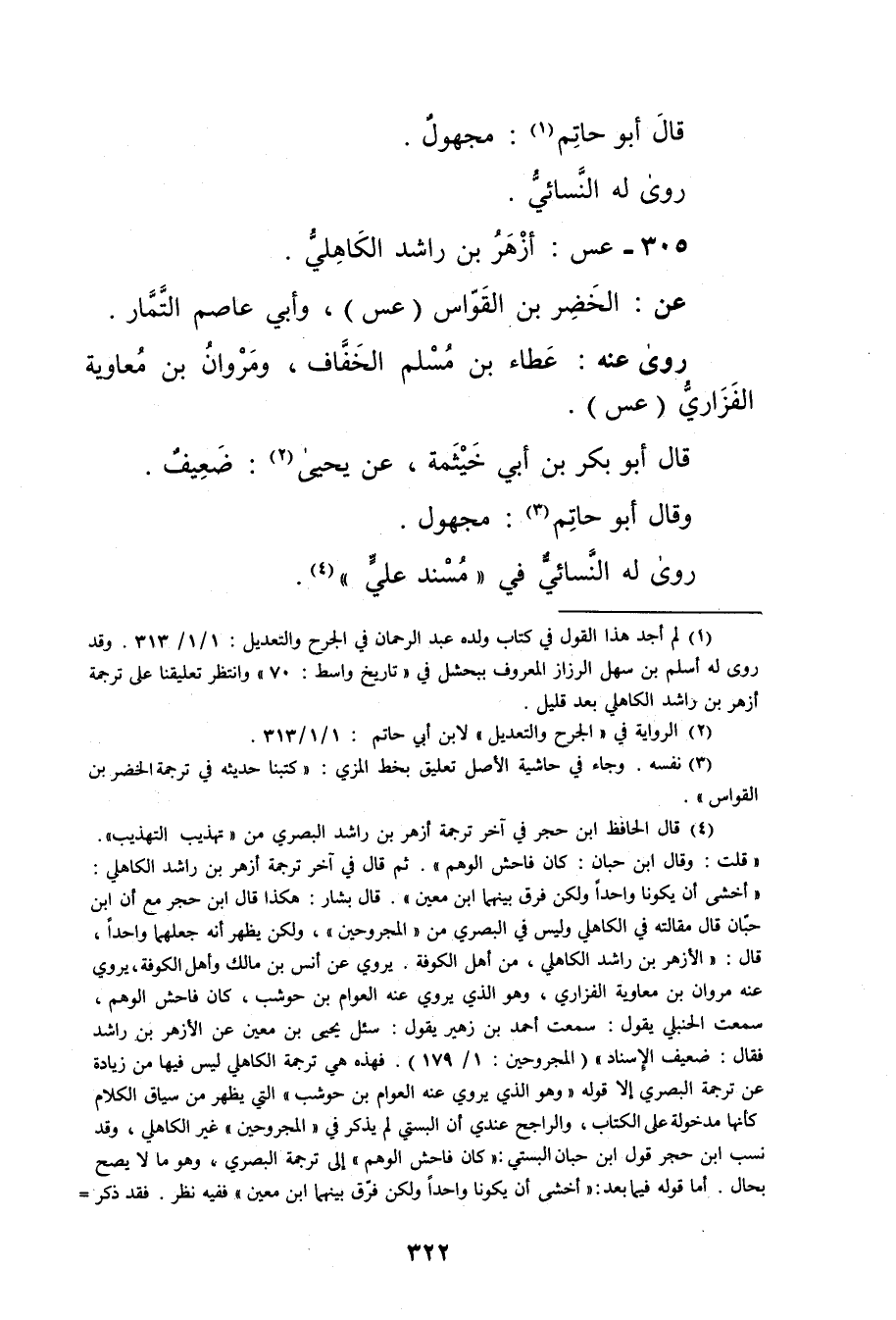 (1) لم أجد هذا القول في كتاب ولده عبد الرحمن في الجرح والتعديل: 1 / 1 / 313. وقد روى له أسلم بن سهل الرزاز المعروف ببحشل في "تاريخ واسط: 70"وانتظر تعليقنا على ترجمة أزهر بن راشد الكاهلي بعد قليل.
