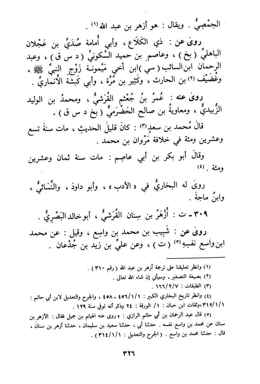 (1) وانظر تعليقنا على ترجمة أزهر بن عَبد الله (رقم 310) .