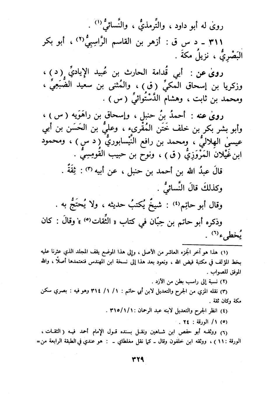(3) نقله المزي من الجرح والتعديل لابن أَبي حاتم: 1 / 1 / 314 وهو فيه: بصري سكن مكة وكان ثقة.